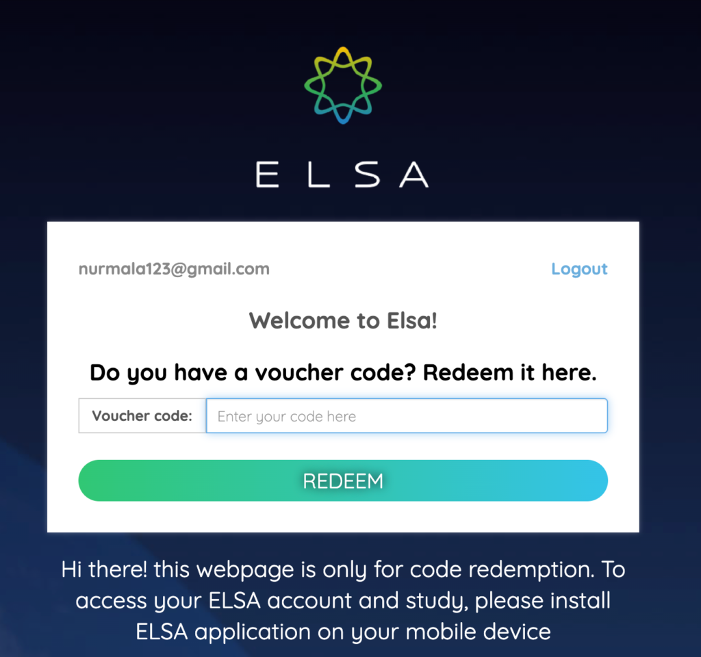 Cacatan: Tautan ini harus dibuka di browser (Chrome, Firefox, Safari, dll.). Kode voucher tidak dapat diaktifkan melalui aplikasi ELSA.