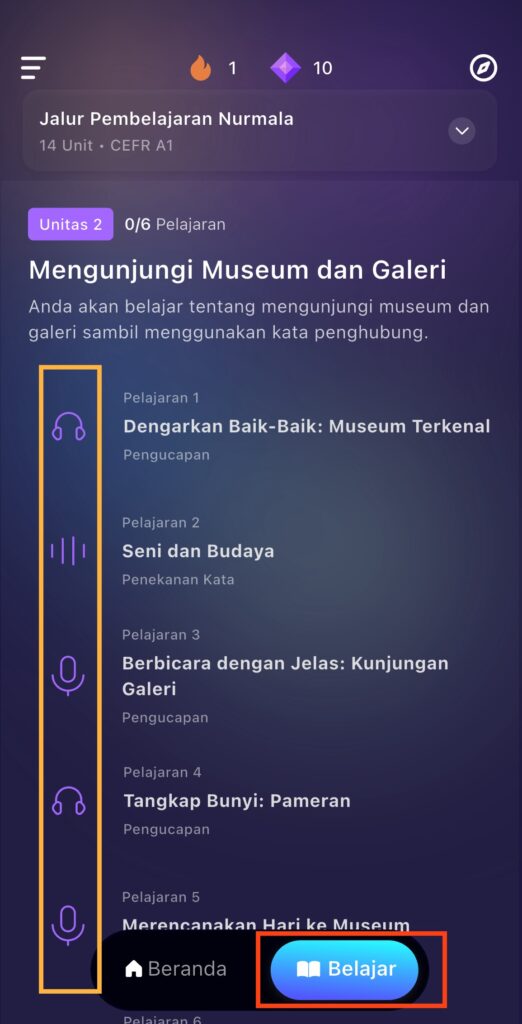 Saat ini, preferensi aksen yang Anda pilih hanya berlaku untuk pelajaran yang dihasilkan AI di fitur Learning Path, termasuk: