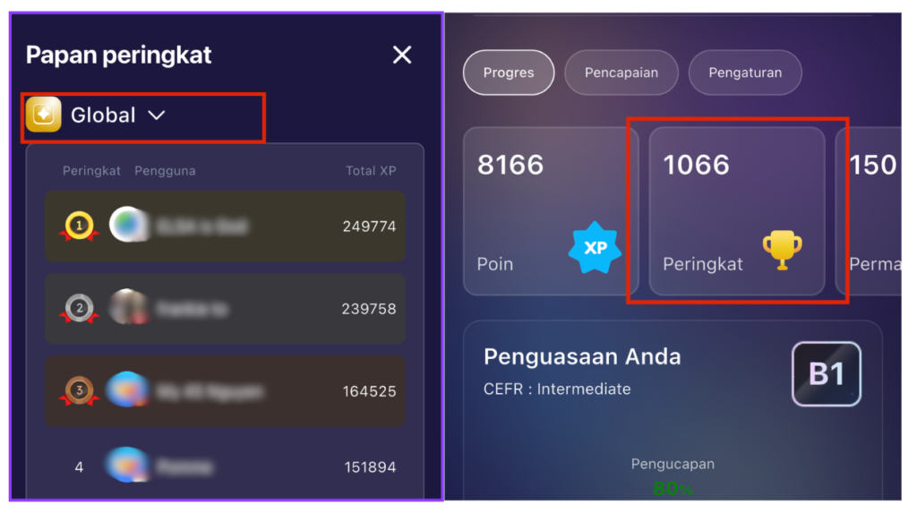 Semakin tinggi streak kamu, semakin banyak poin yang didapat untuk bersaing di Papan Peringkat Mingguan.