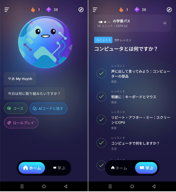 今回のアップデートでは、旧バージョンにあった「スキル」「発音改善」「コーチ」といった主要機能を再設計し、ひとつに統合しました。それが 学習パス です。