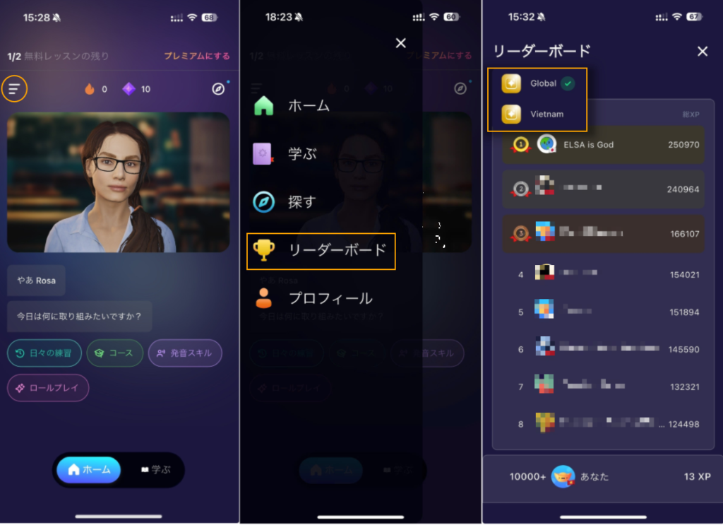 統合されたリーダーボード機能を楽しめます。世界中の学習者や国内の学習者と一緒に、一つの画面でランキングを競うことができます。