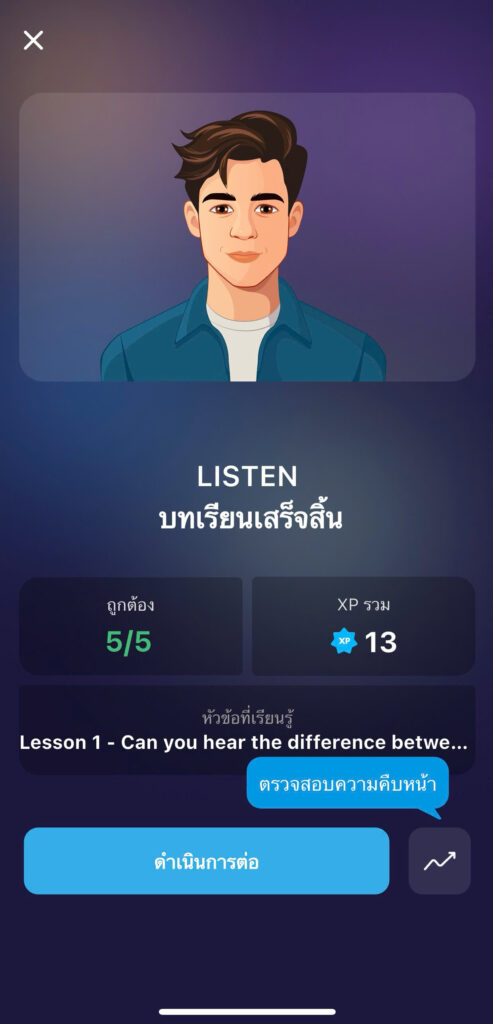 - คะแนนของคุณหลังจากจบบทเรียน.
