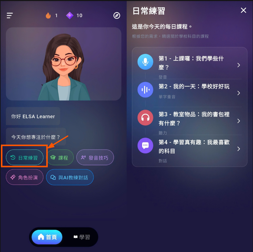 日常練習可在以下位置找到:首頁 → 日常課程練習