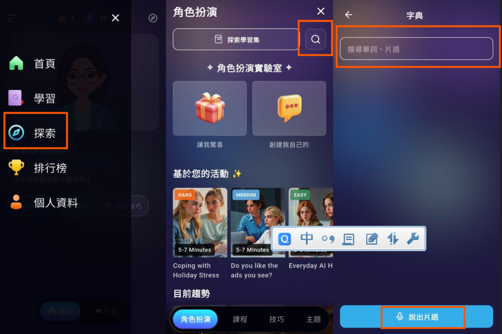 查詢單字或句子並錄製你的聲音,以獲得發音回饋。